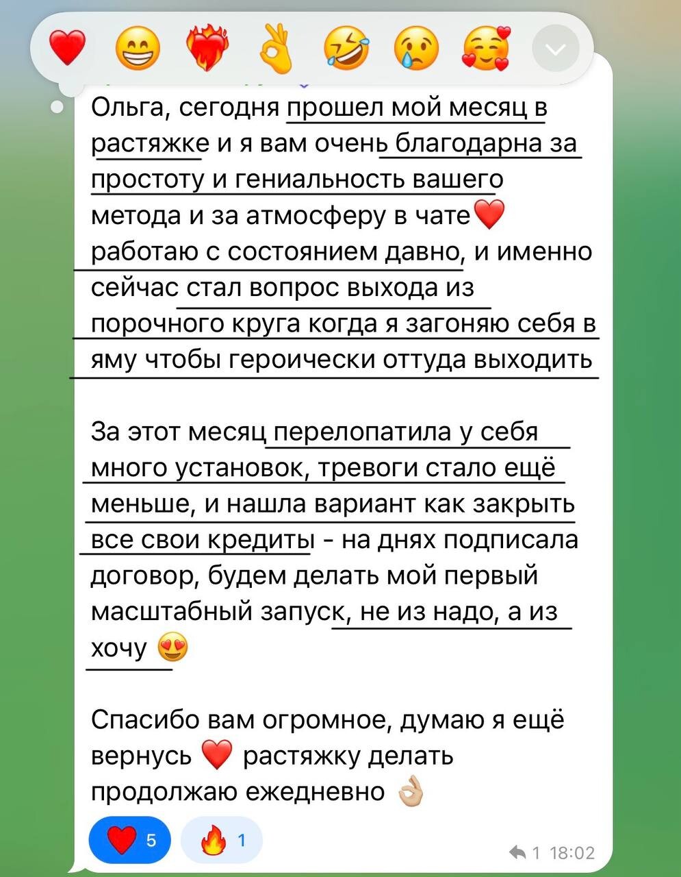 Частые прямые эфиры с Ольгой, обмен опытом и поддержка единомышленников.